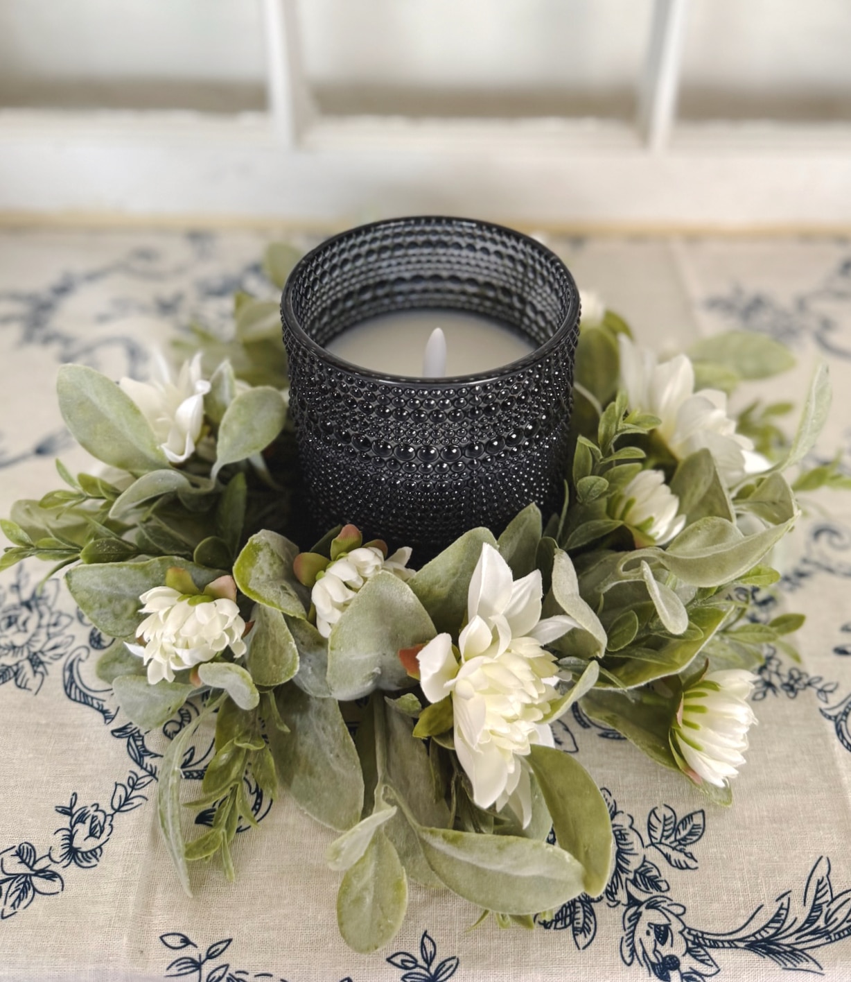 Navy Dotted Glass Flameless Candle