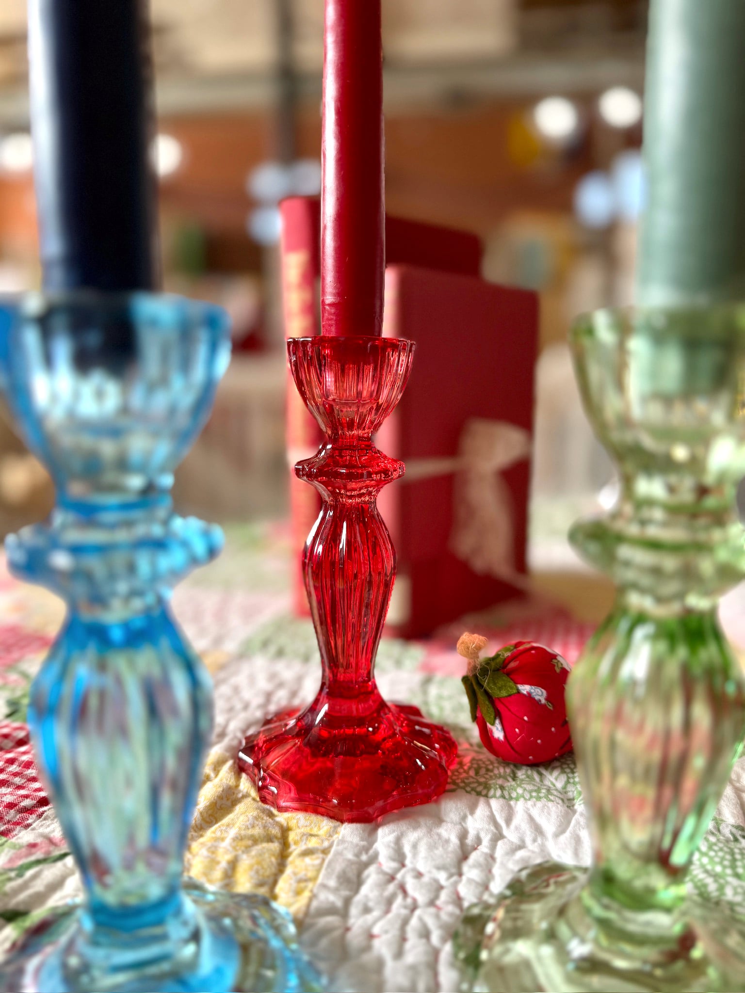 Red Glass Taper Candle Holder