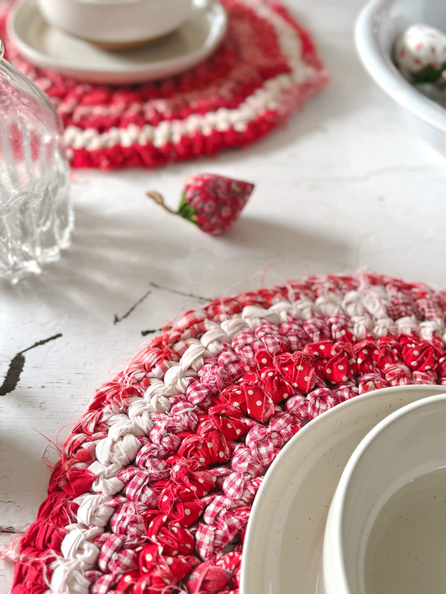 Found Placemat Red White Braided