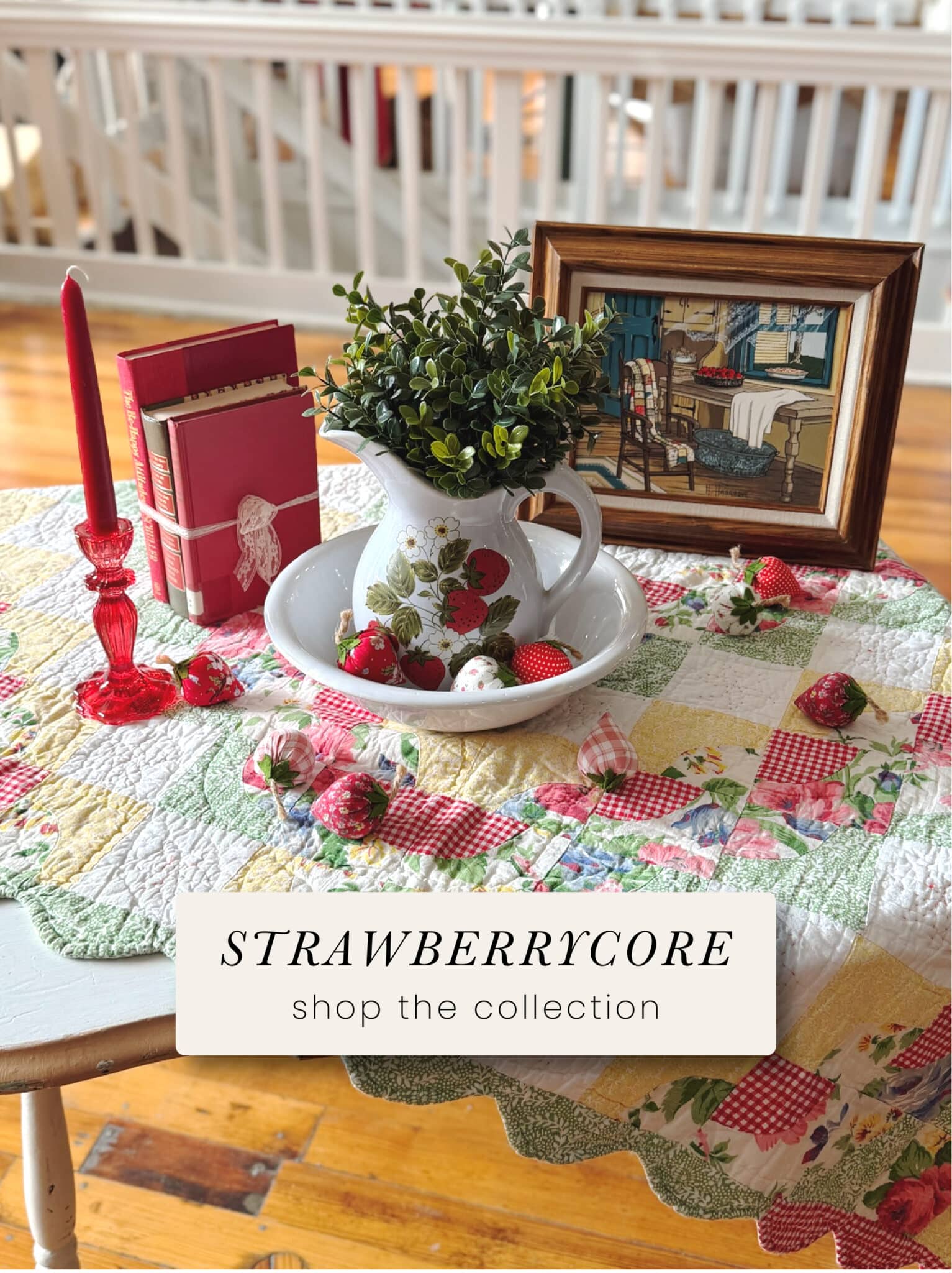 Bring home the charm of strawberrycore home decor with this curated mix of vintage and vintage-inspired pieces designed for cozy, nostalgic living. Inspired by the classic colors of strawberries—rich reds, fresh greens, and soft blues. Shop strawberrycore home decor with vintage finds, classic red and green tones, and nostalgic charm for a cozy, collected cottage-style home.