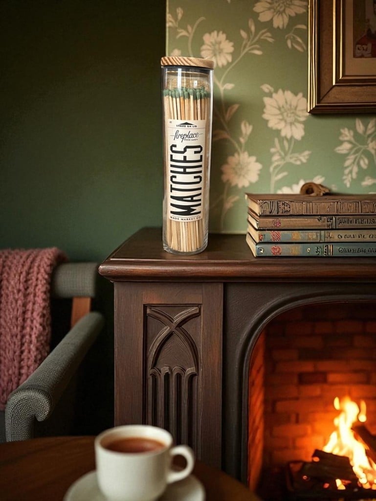 Bring both charm and function to your space with our Apothecary Vintage Fireplace Sage Green Matches — made for safe lighting and timeless style.
