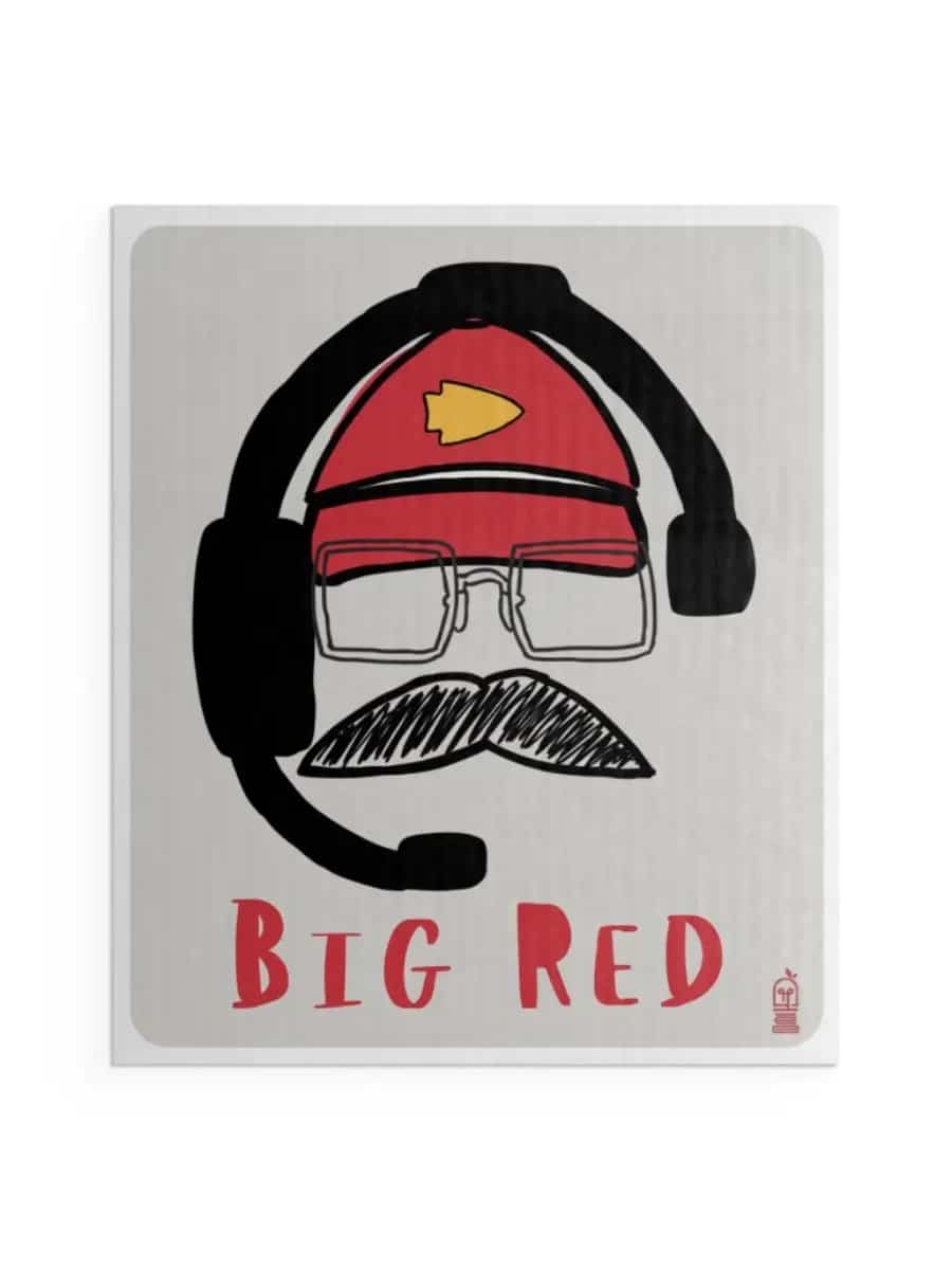 Show your KC pride with the Big Red Swedish Dish Cloth. With a red cap, headset, and mustache design, itās a playful nod to the teamās legendary coach.