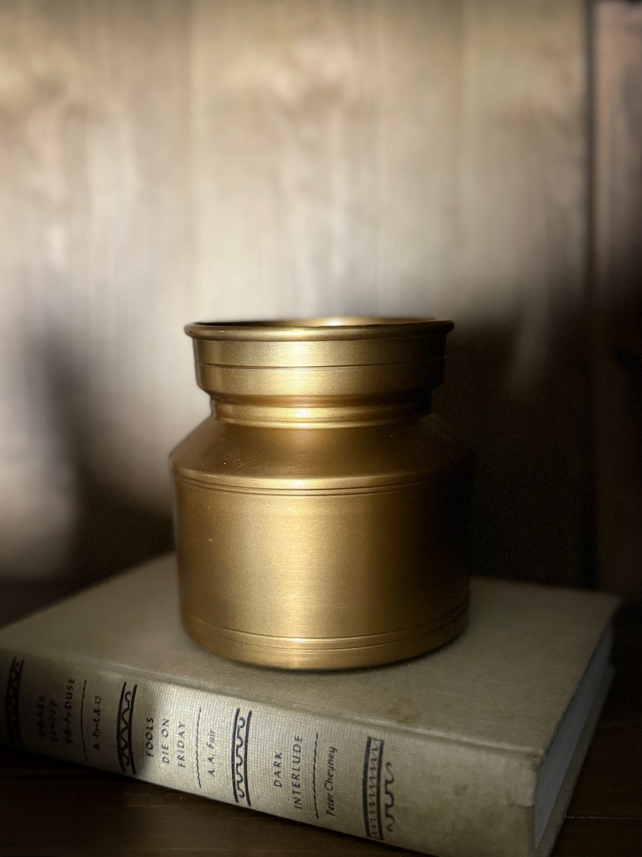 Its compact size makes it easy to style on open shelves, countertops, or accent tables. Use it to display greenery, dried florals, or simply let it shine on its own. The soft metallic tone pairs beautifully with both bold and neutral palettes, making it a versatile addition to modern, global, or collected interiors.
