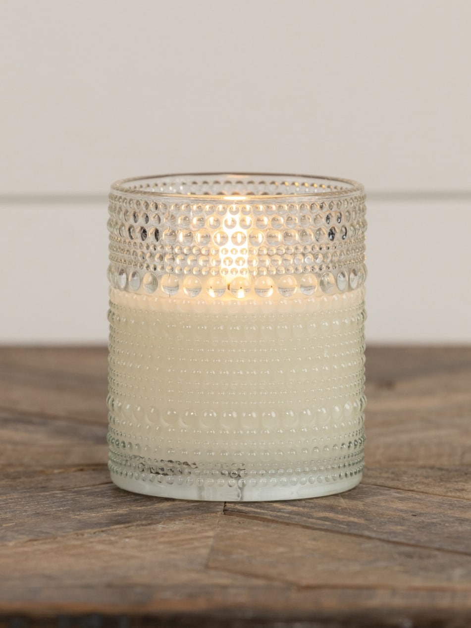 Bring a warm, elegant glow to your home with the Clear Dotted Glass Flameless Candle, available in two sizes—5″ and 4″. The clear glass vessel features a dotted texture that catches the light beautifully, adding subtle sparkle to holiday displays or everyday décor.