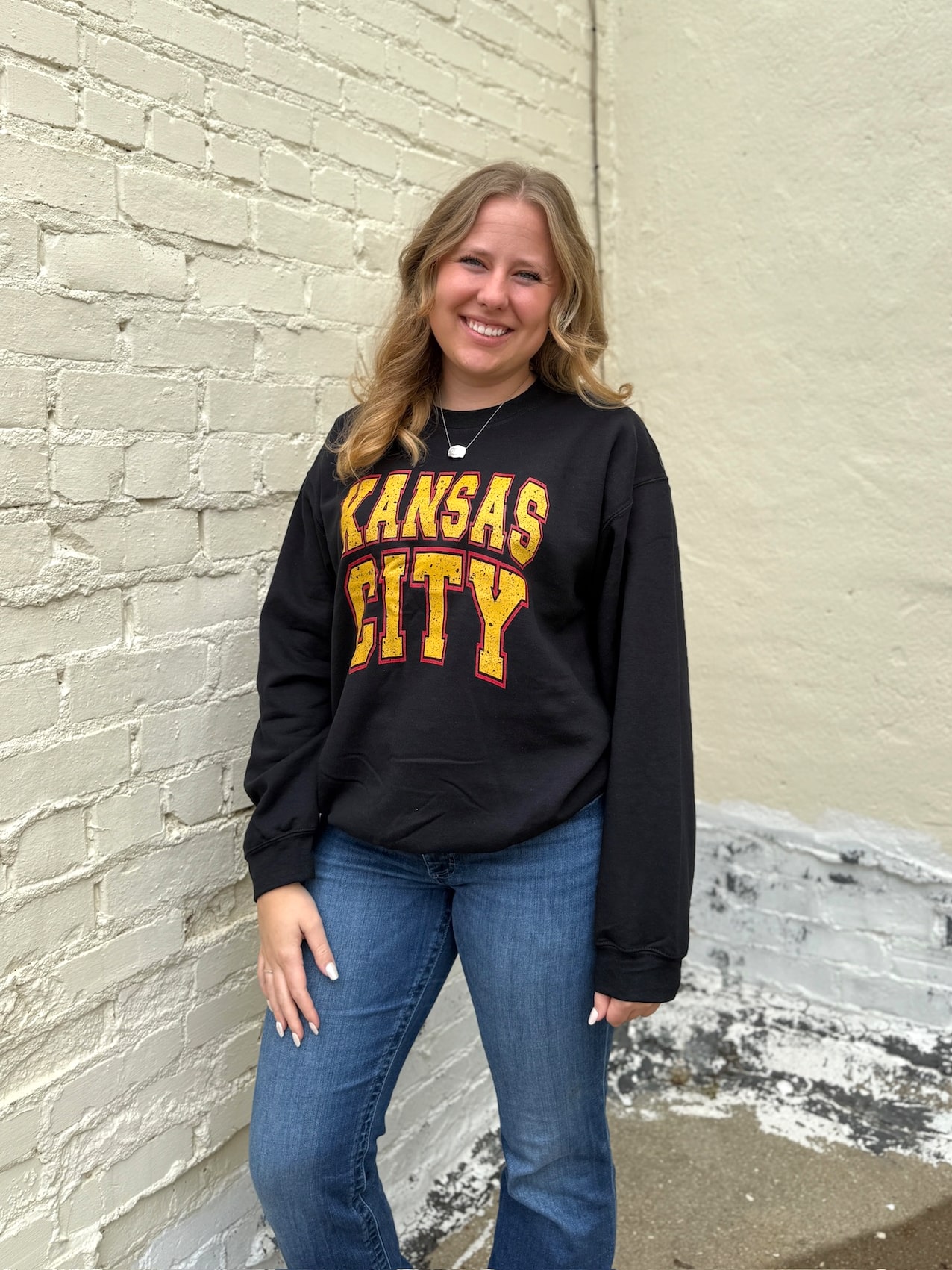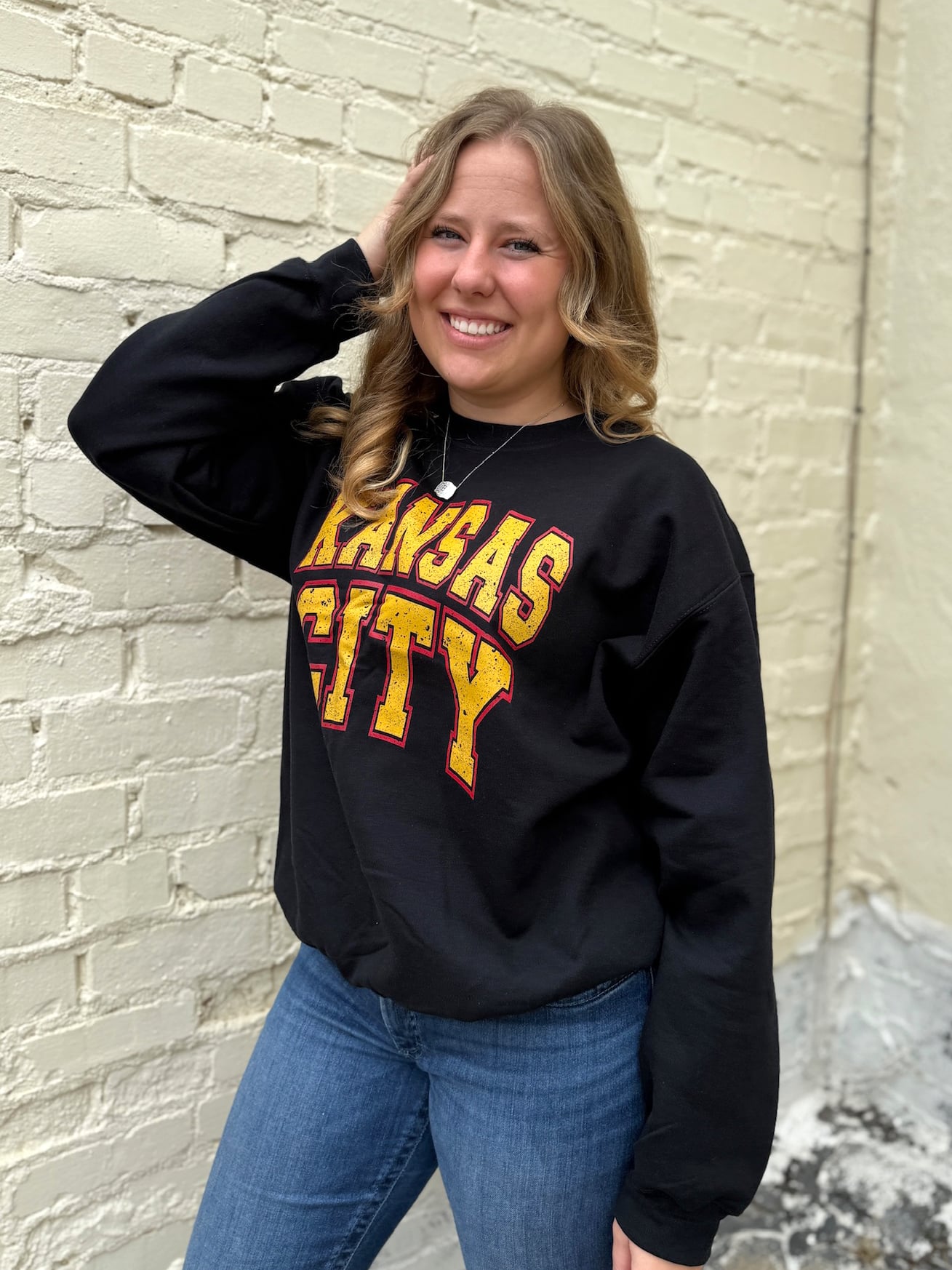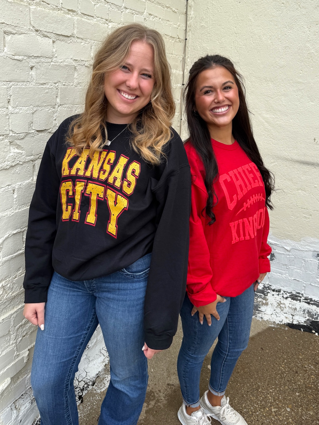 Rep your city in bold style with the Kansas City Block Crewneck. Featuring oversized red and gold block lettering across the chest, this sweatshirt makes a statement while keeping you comfortable.