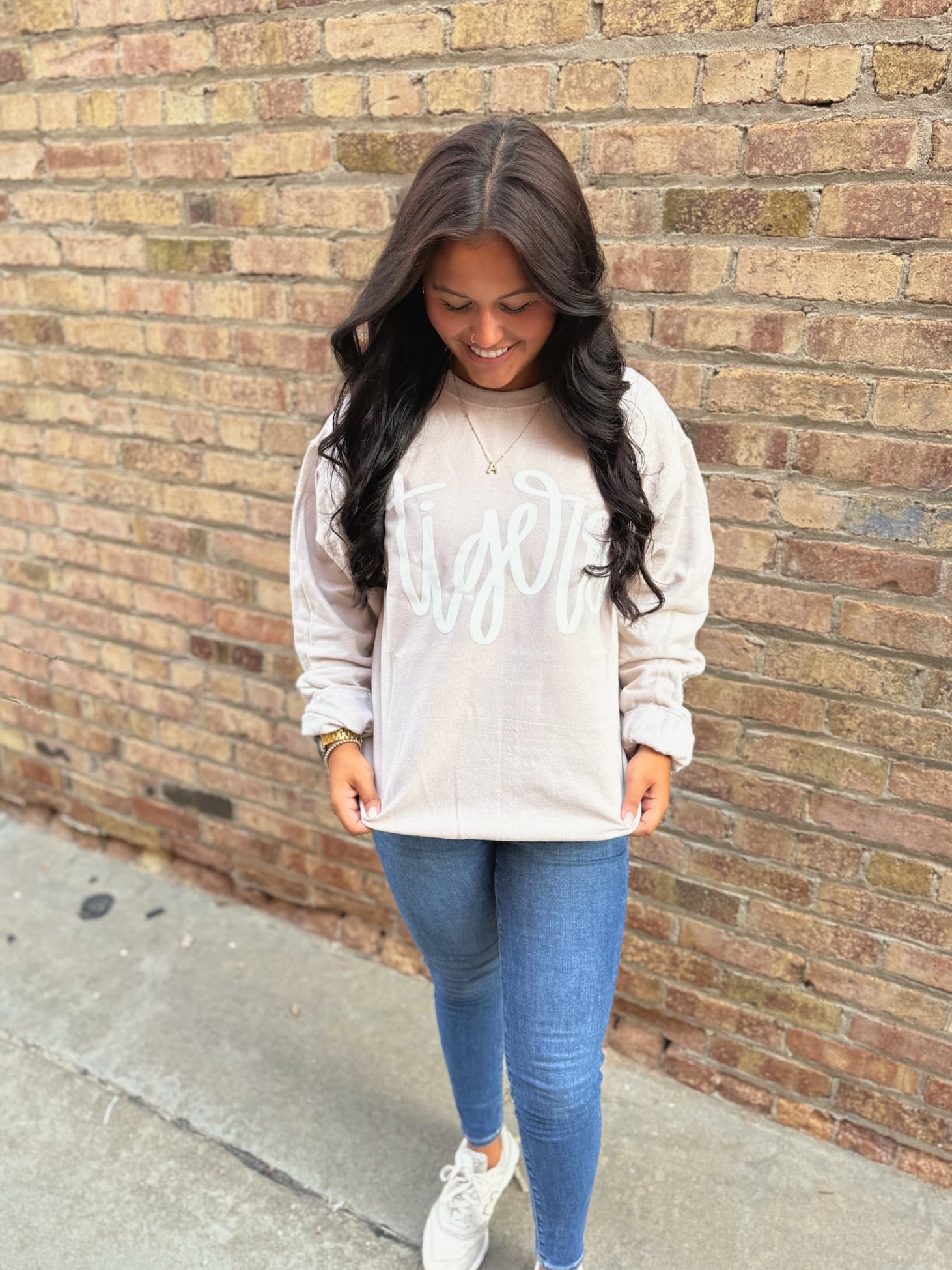 From early morning classes to Friday night lights, the Crewneck Tigers Puff Ink Stone keeps you cozy and spirited all day long. This ultra-soft sweatshirt features bold “Tigers” script in a white puff ink design—bringing school pride with a modern, elevated edge.