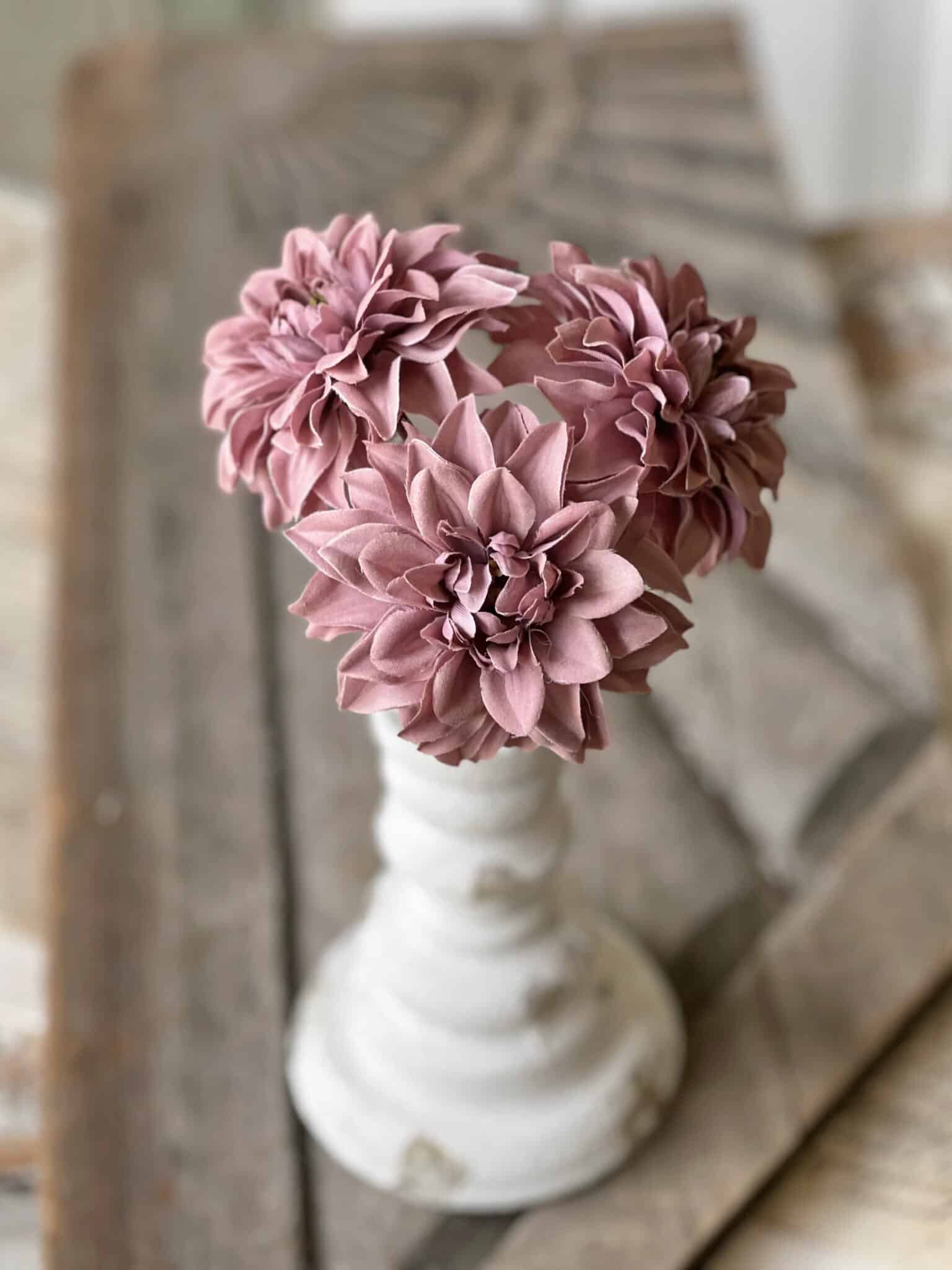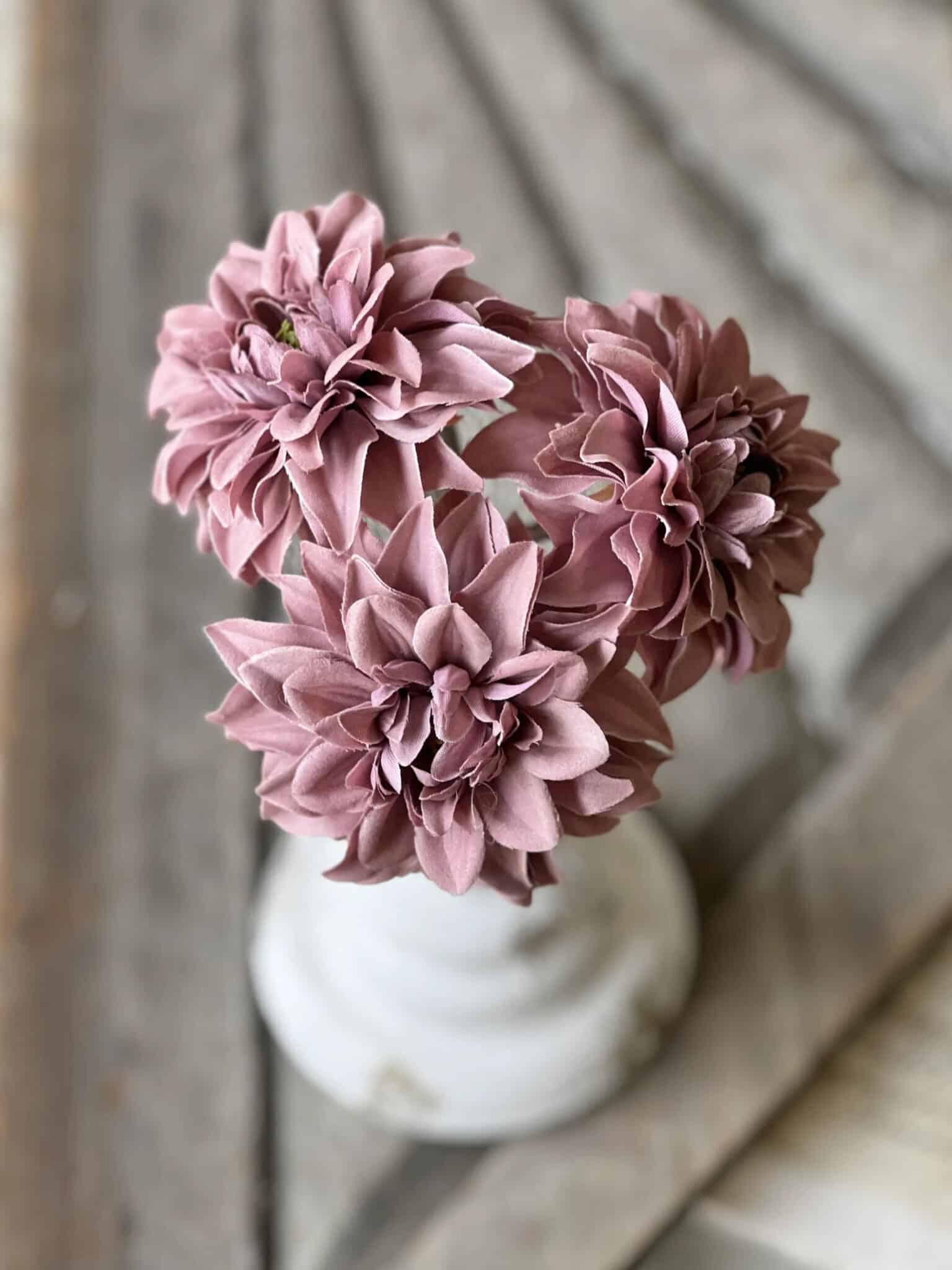 Perfect for nightstands, coffee tables, open shelving, or entryway styling, these dahlias deliver lasting beauty without the upkeep of fresh florals.
