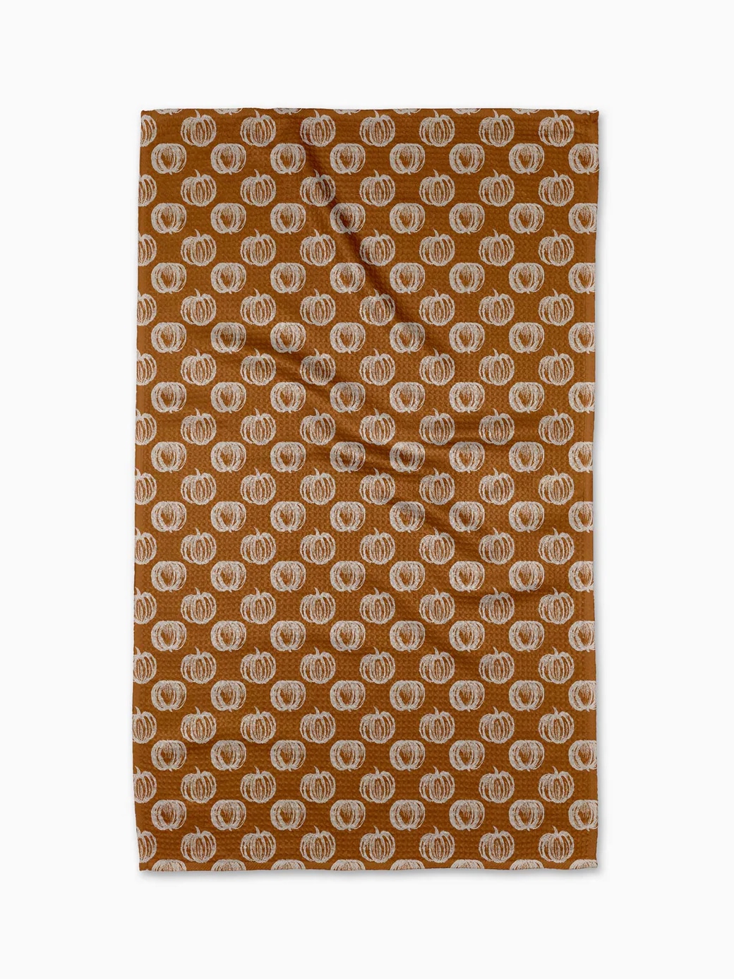 Celebrate the season with the Fall Bounty Geometry Towel—a cozy kitchen essential featuring a rich brown background dotted with rows of tiny white pumpkin outlines. This festive design brings a touch of autumn charm to your space while delivering everyday function you’ll love.