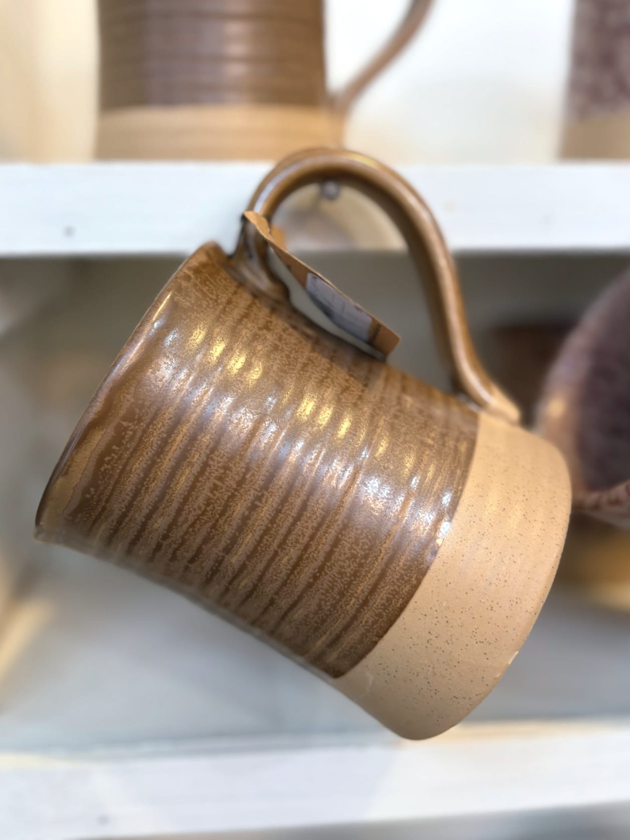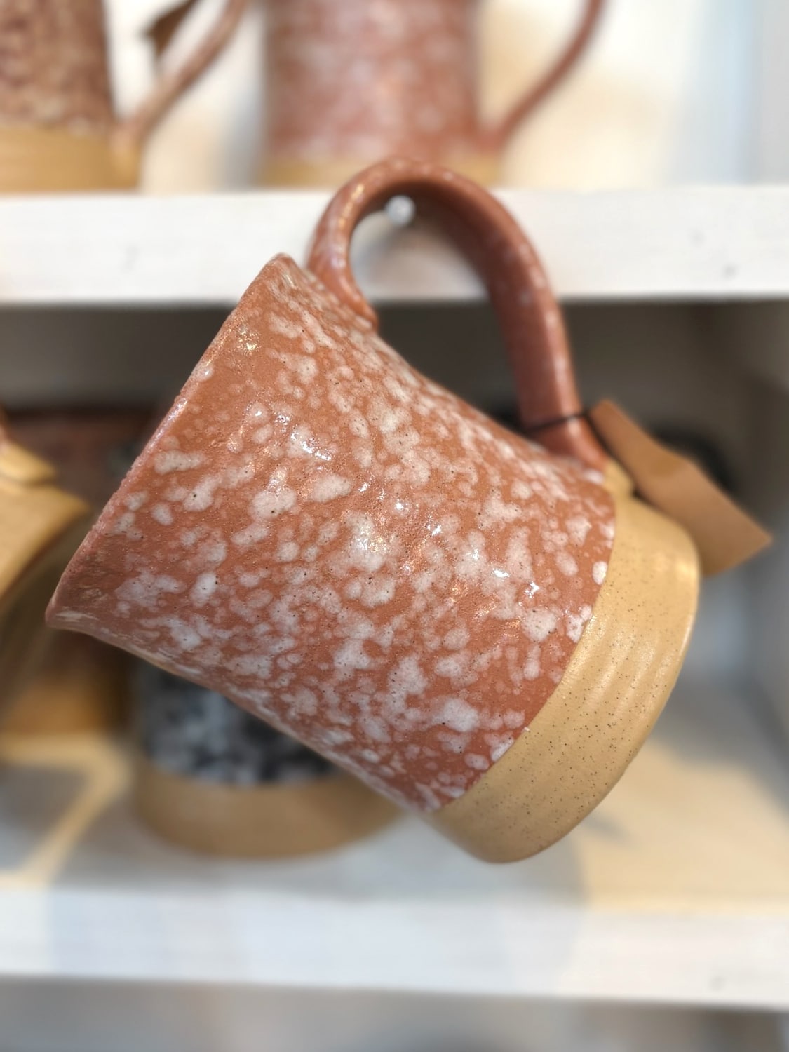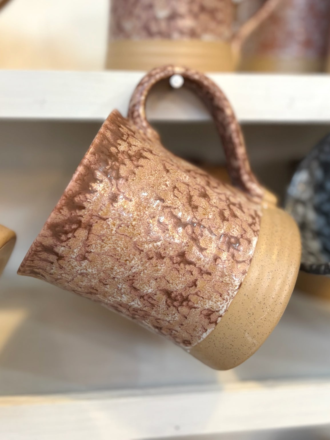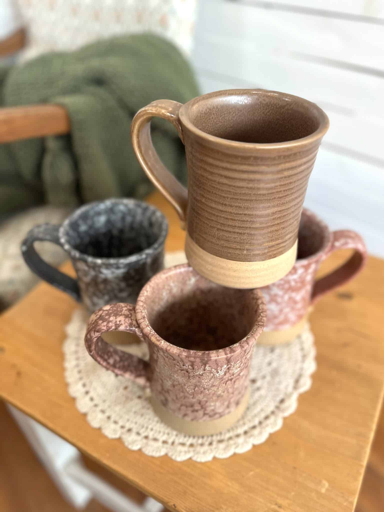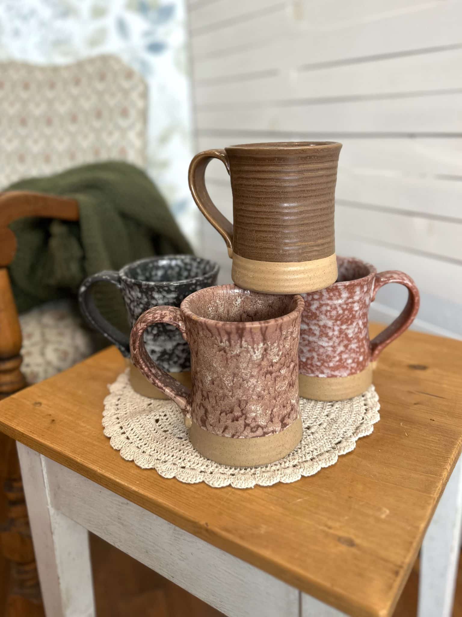Each mug is one-of-a-kind. Because of the reactive glaze, glaze hues and patterns will vary slightly from mug to mug, adding to their handmade charm. This variation gives each piece a collected, artisanal feel.