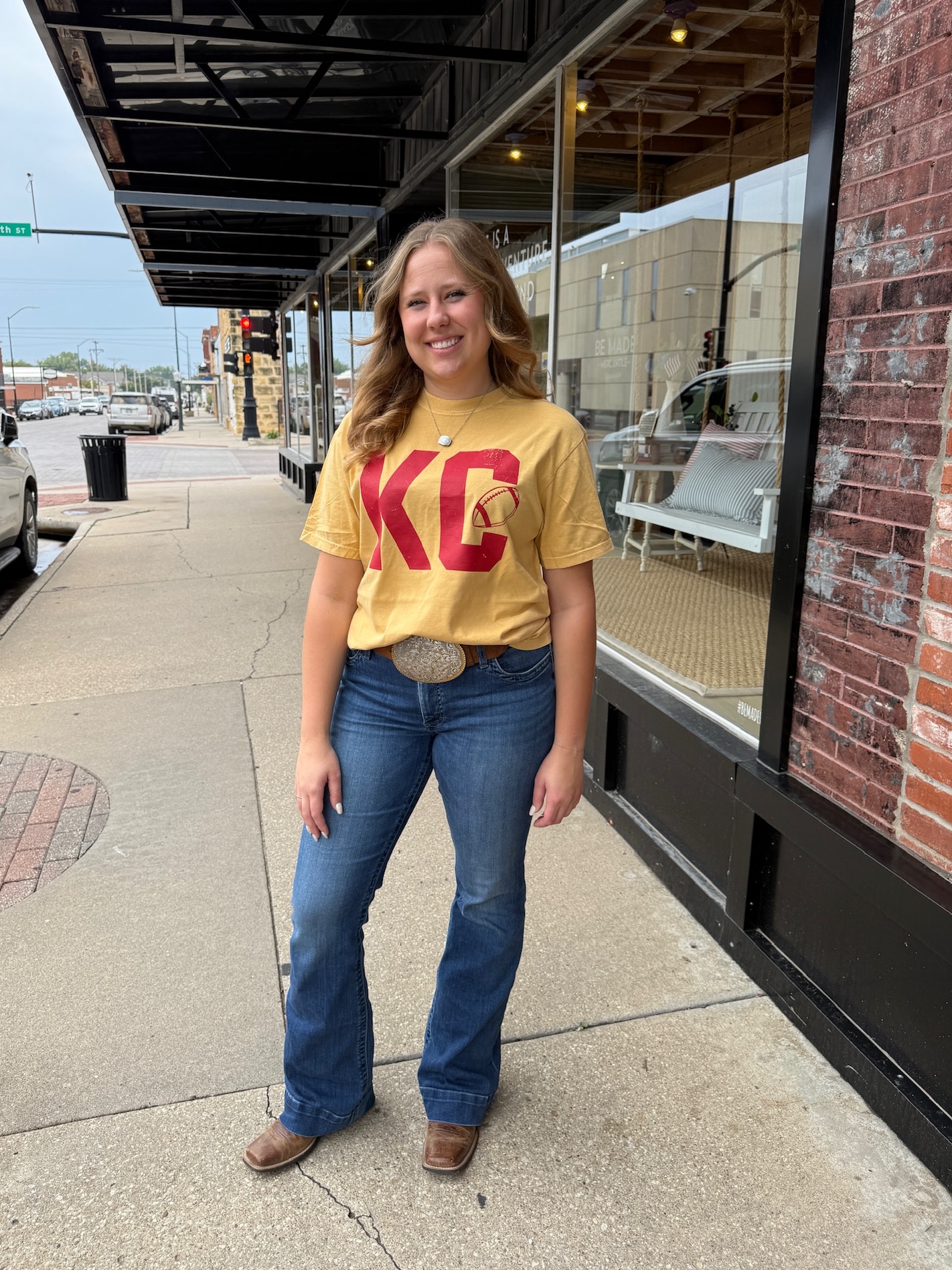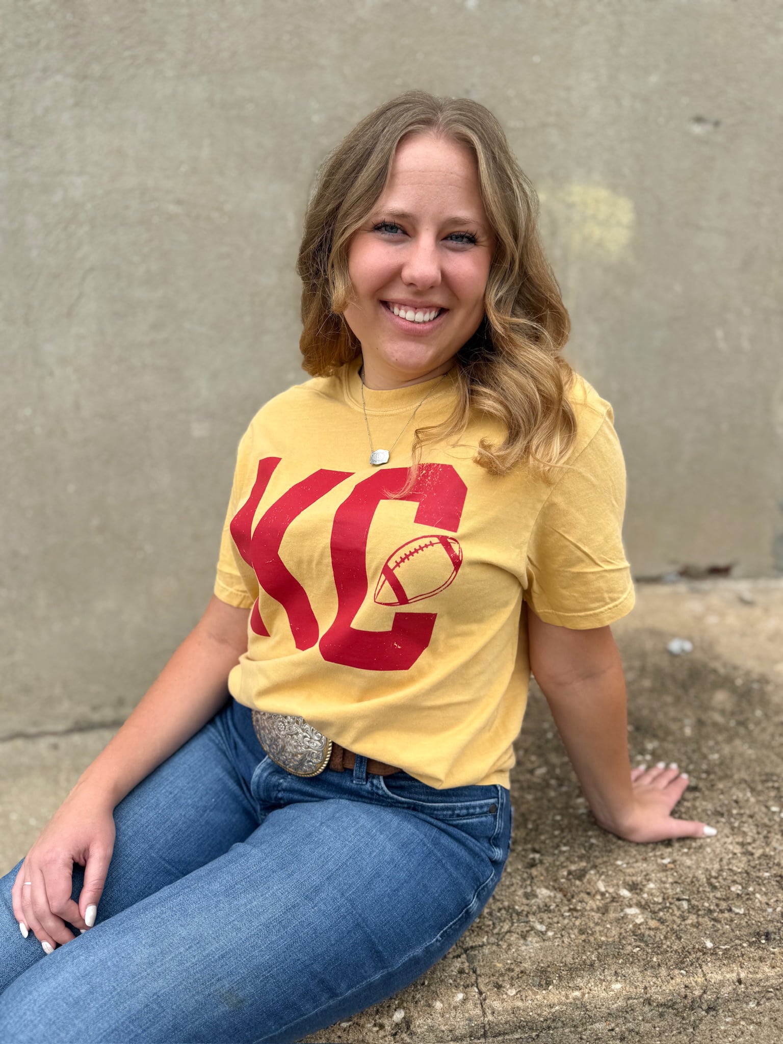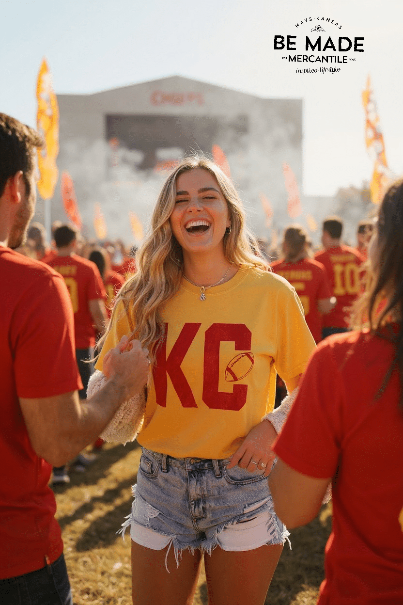 Classic KC football vibes with a vintage twist. The Vintage KC Football Graphic Tee delivers bold style and all-day comfort, making it your new game day staple. Featuring a distressed red “KC” football graphic printed on a mustard Comfort Colors tee, it channels that retro fan energy while keeping things modern and versatile.
