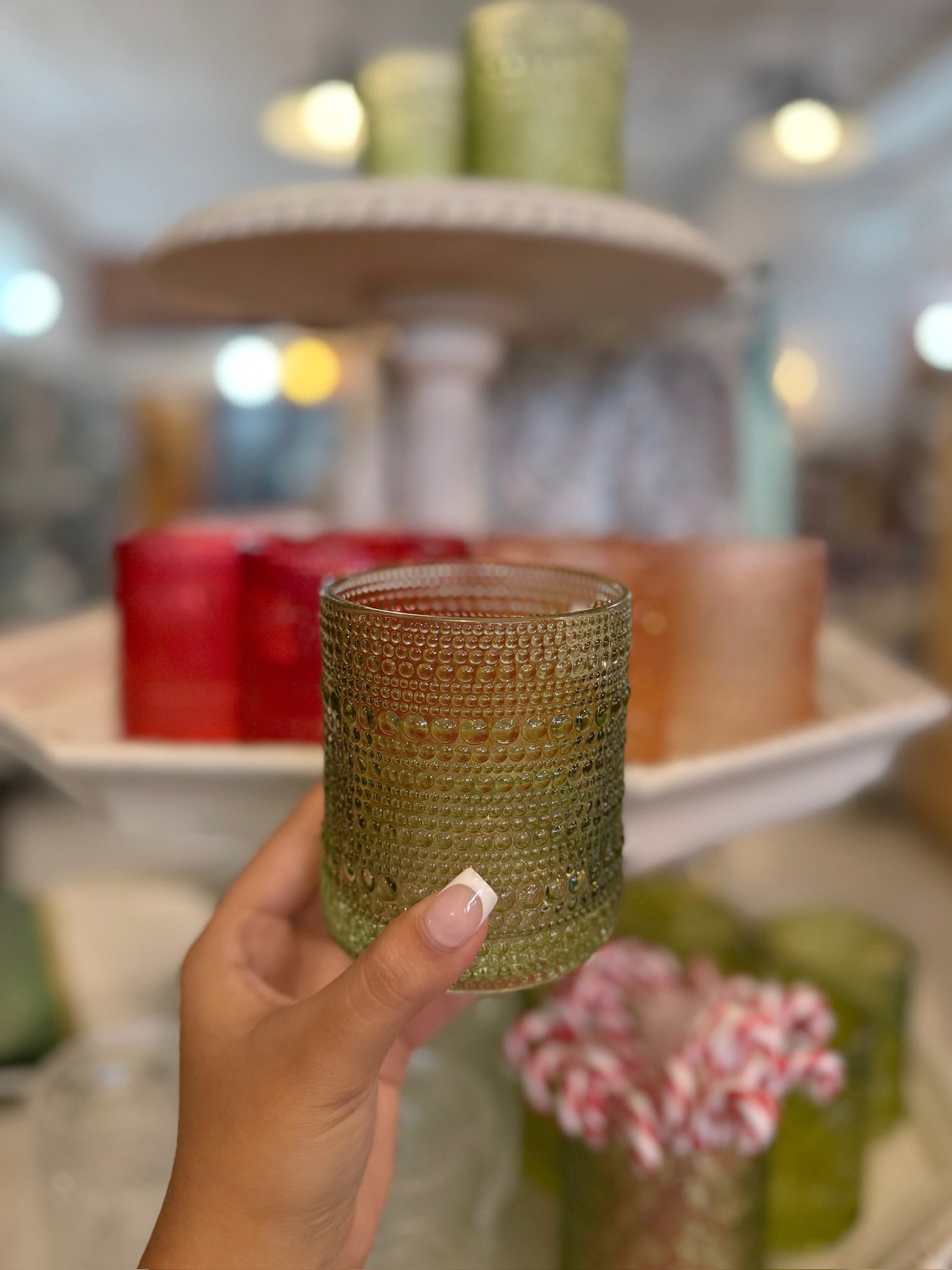 - Vintage-inspired beaded texture in a soothing sage green finish