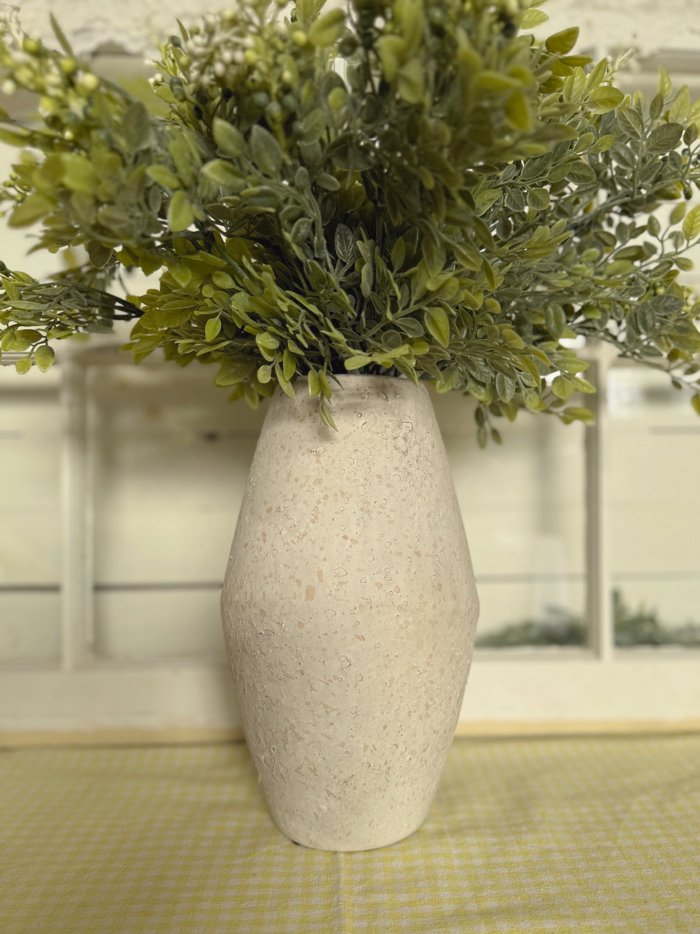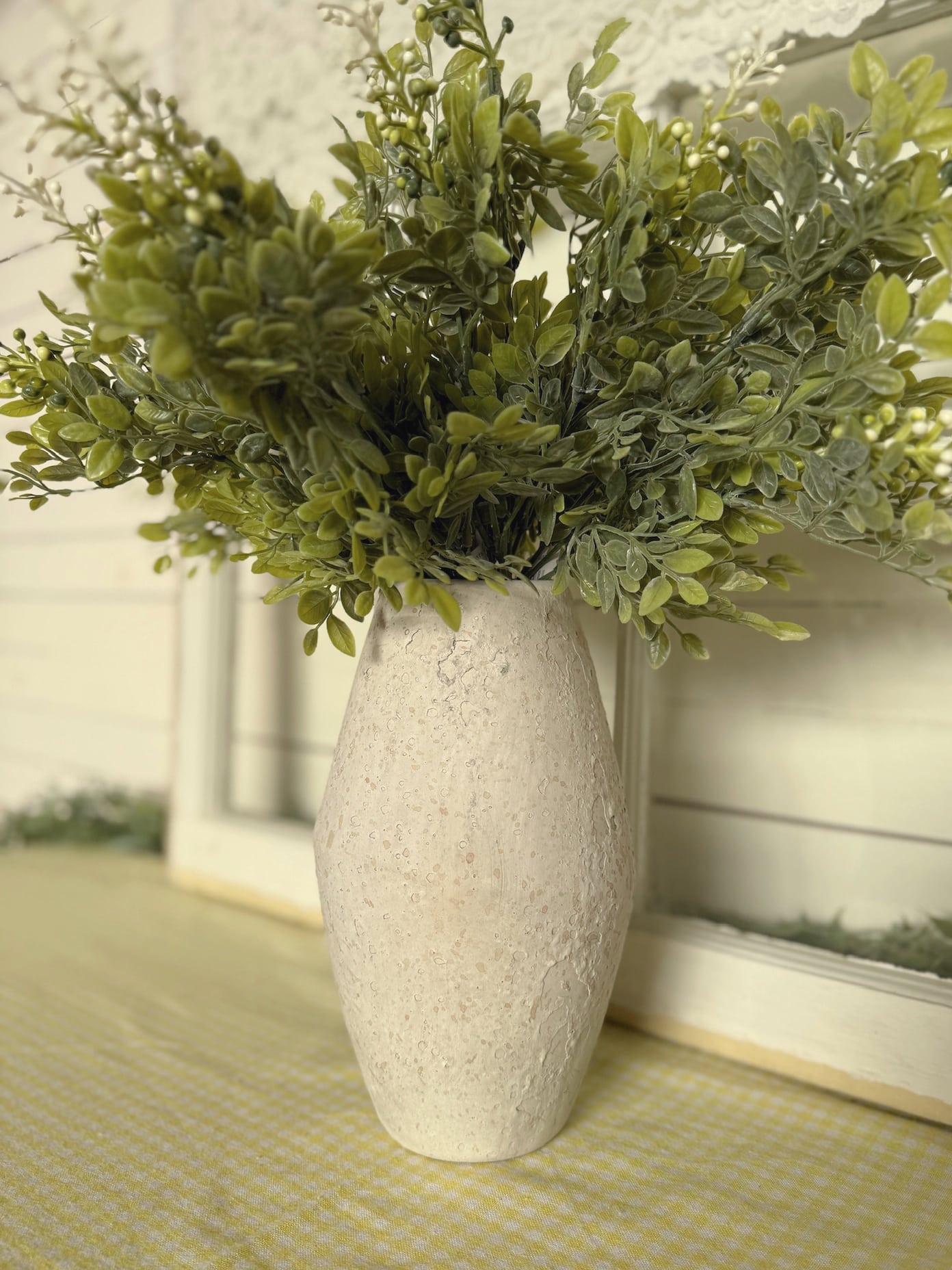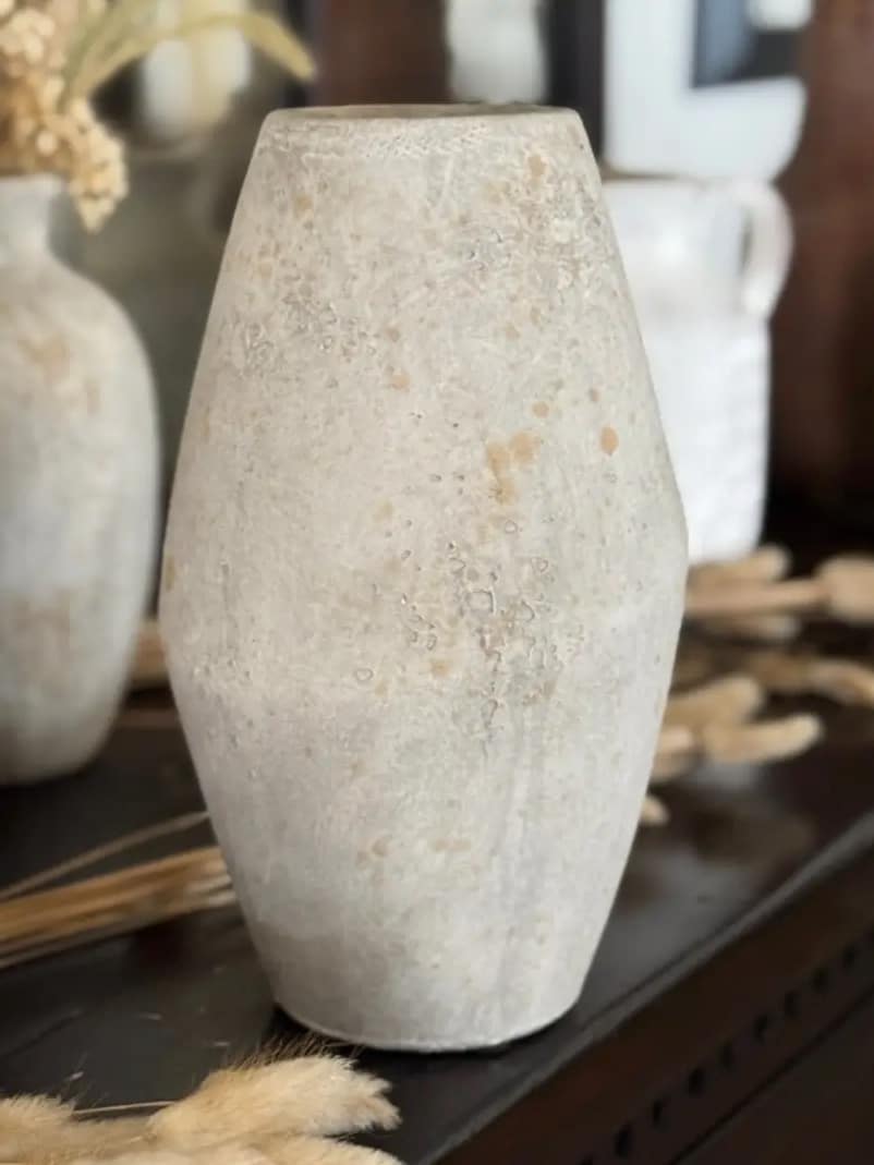 The Large Rustic White Vase blends timeless simplicity with natural texture. Its soft white finish and weathered surface create a relaxed, lived-in look that fits perfectly in both modern and cottage-style spaces.