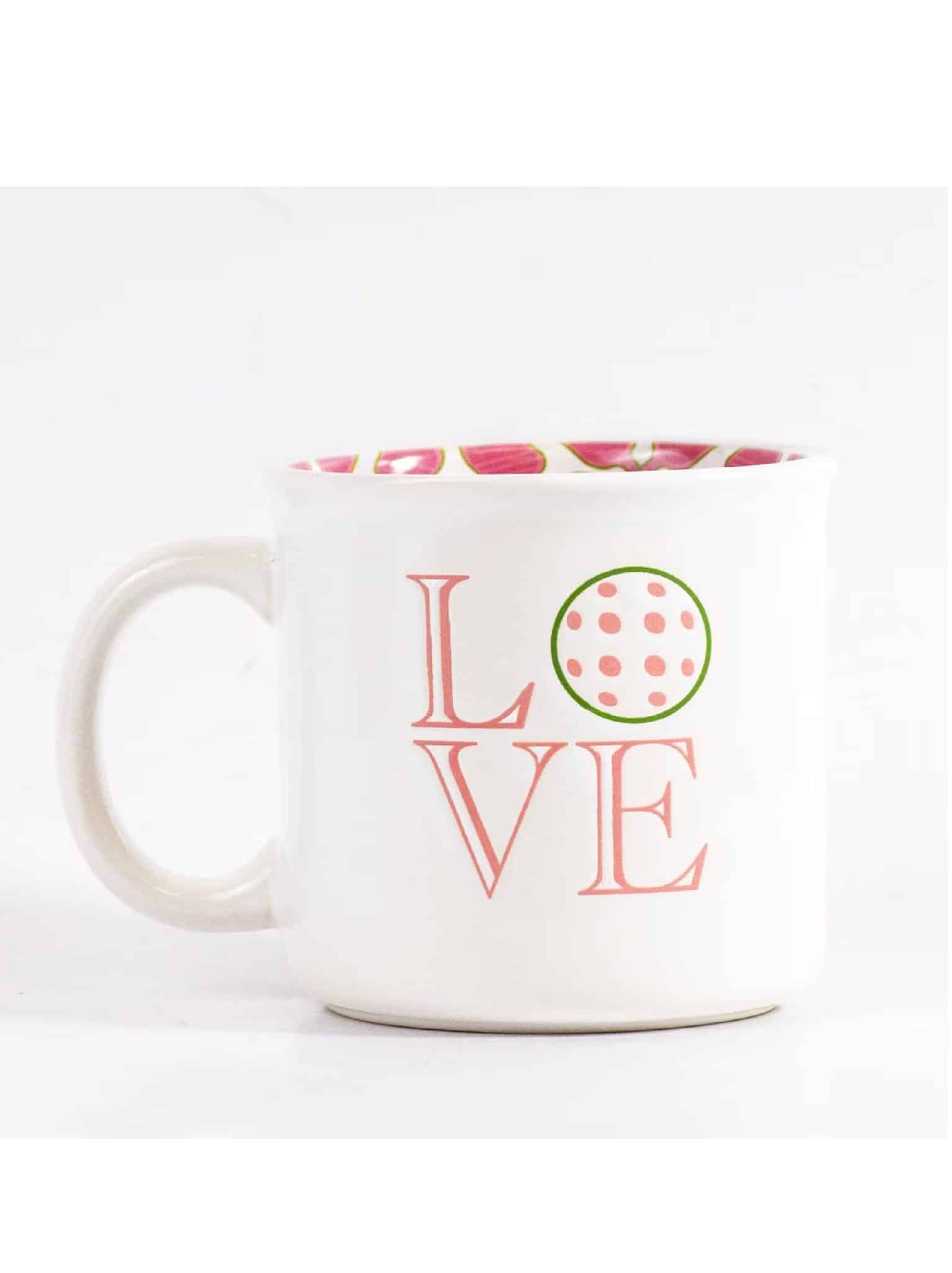 Serve up your morning coffee with a side of pickleball pride with the Love Pickleball Mug. This white ceramic mug features the word “LOVE” with a playful pickleball design replacing the “O,” and a vibrant interior patterned with pink paddles and pickleballs. It’s a fun and functional gift for players and fans alike.