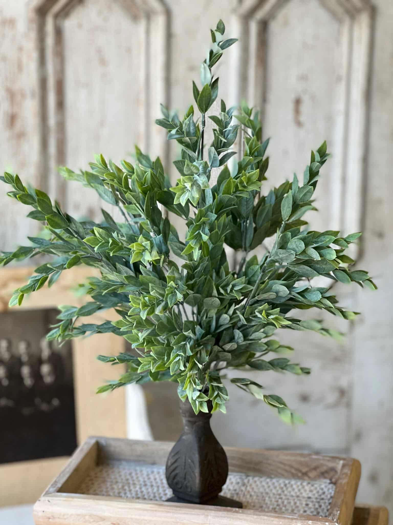 - Material: Faux greenery with powdered finish