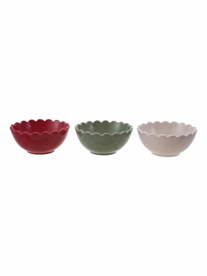 Bring simple elegance to your kitchen with the Scalloped Stoneware Bowls – 3 Colors. Each piece is designed with a timeless scalloped edge and comes in festive yet versatile hues—white, green, or red. Perfect for serving dips, snacks, or small sides, they’re also great as catch-all bowls for keys, jewelry, or decor accents.