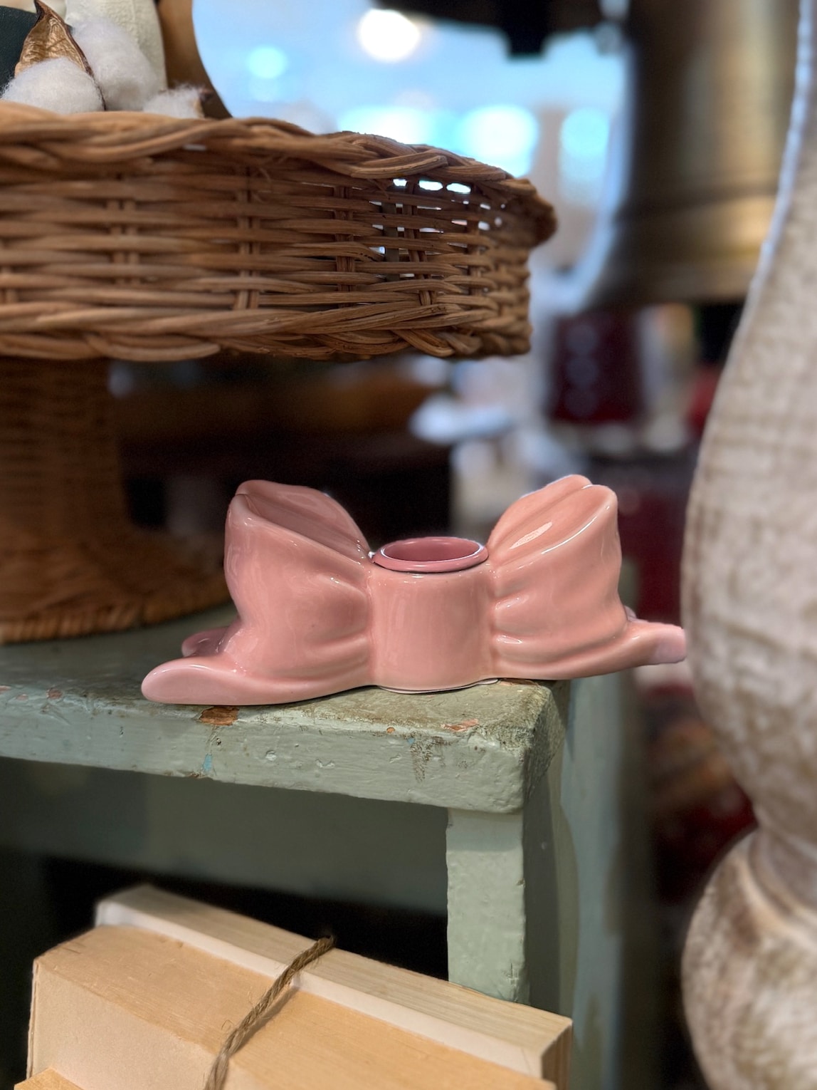 Add a charming accent to your décor with the Bow Taper Candle Holder. Crafted from stoneware, this sweet bow-shaped holder brings a touch of playful elegance to mantels, tables, or holiday displays. Its versatile design makes it perfect for adding warmth and style year-round, whether paired with classic tapers or seasonal candles.