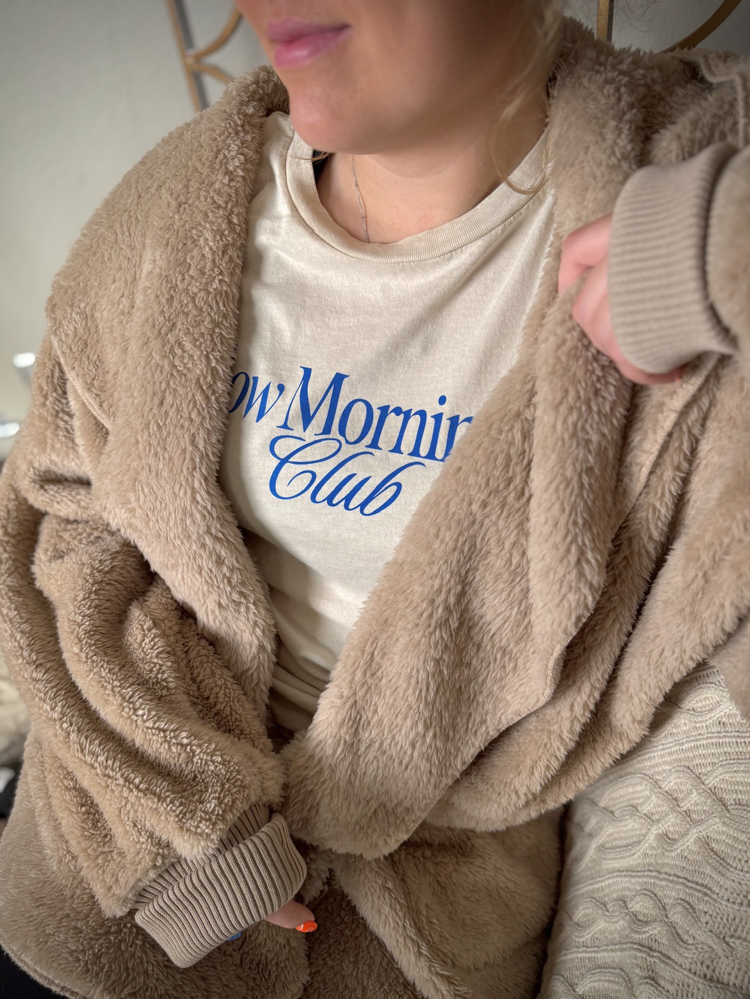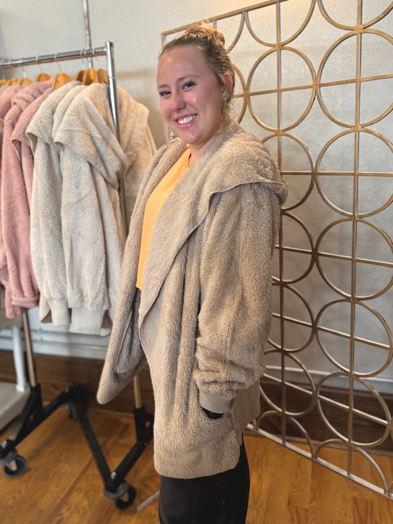 With its versatile taupe tone, this piece pairs beautifully with both casual and elevated outfits. Designed in a relaxed, one-size fit, it layers easily over sweaters, tees, or lounge looks—making it the perfect grab-and-go jacket for chilly mornings, errands, or cozy nights in.