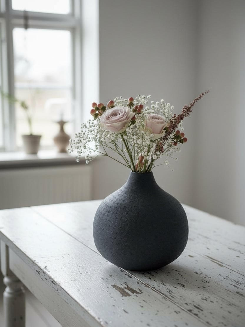The wide mouth makes it perfect for arranging tall stems, dried grasses, or dramatic branches. Or, let its striking design stand alone on a console, dining table, or shelf. Its neutral color and clean lines work effortlessly in contemporary, minimalist, and collected interiors.