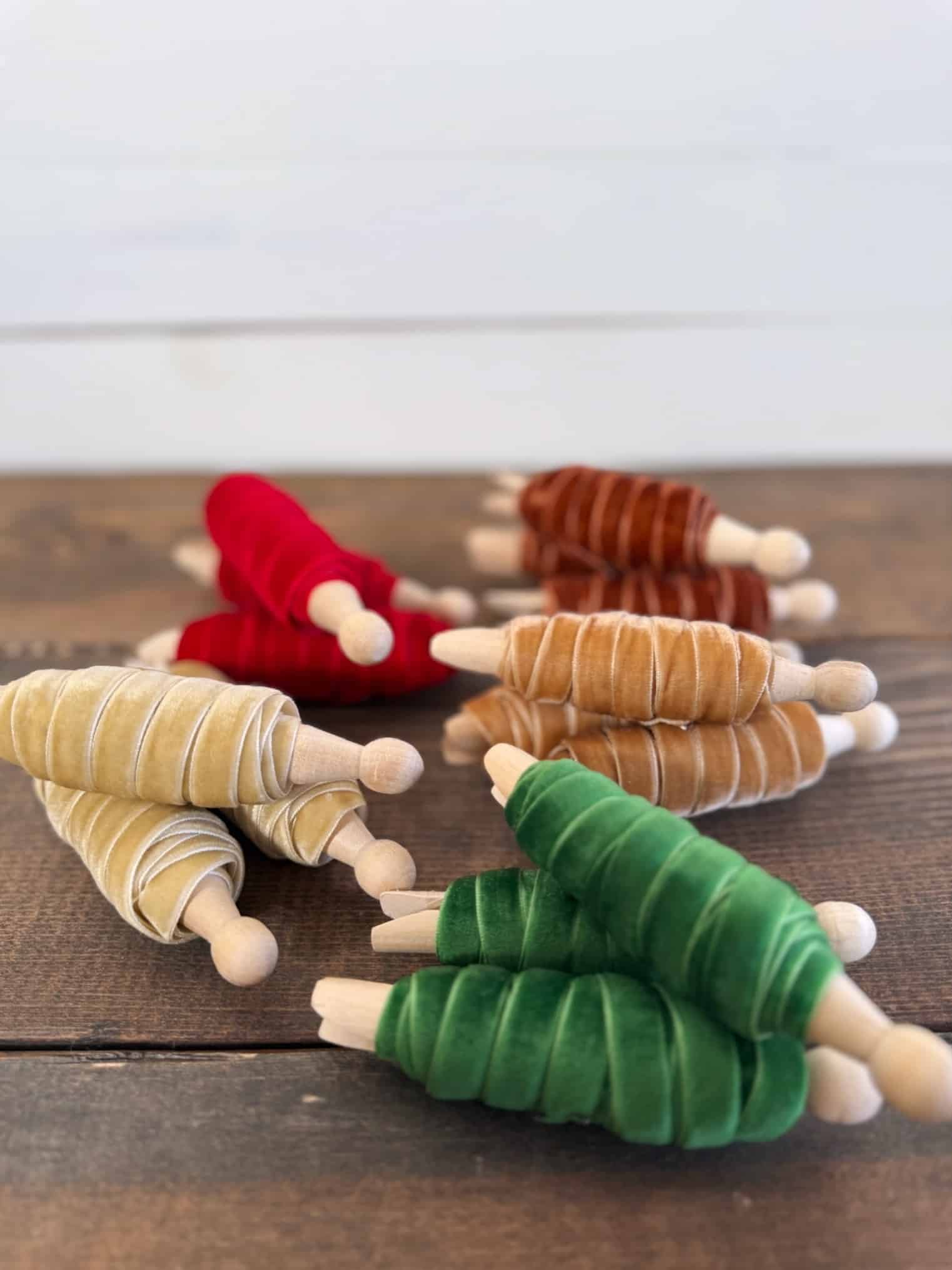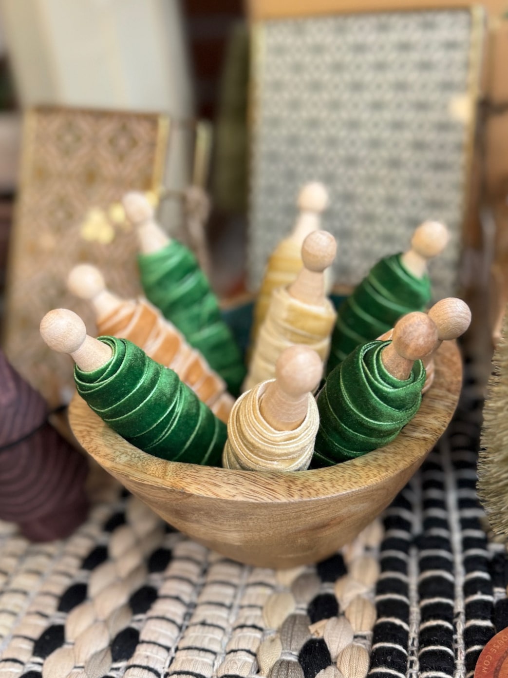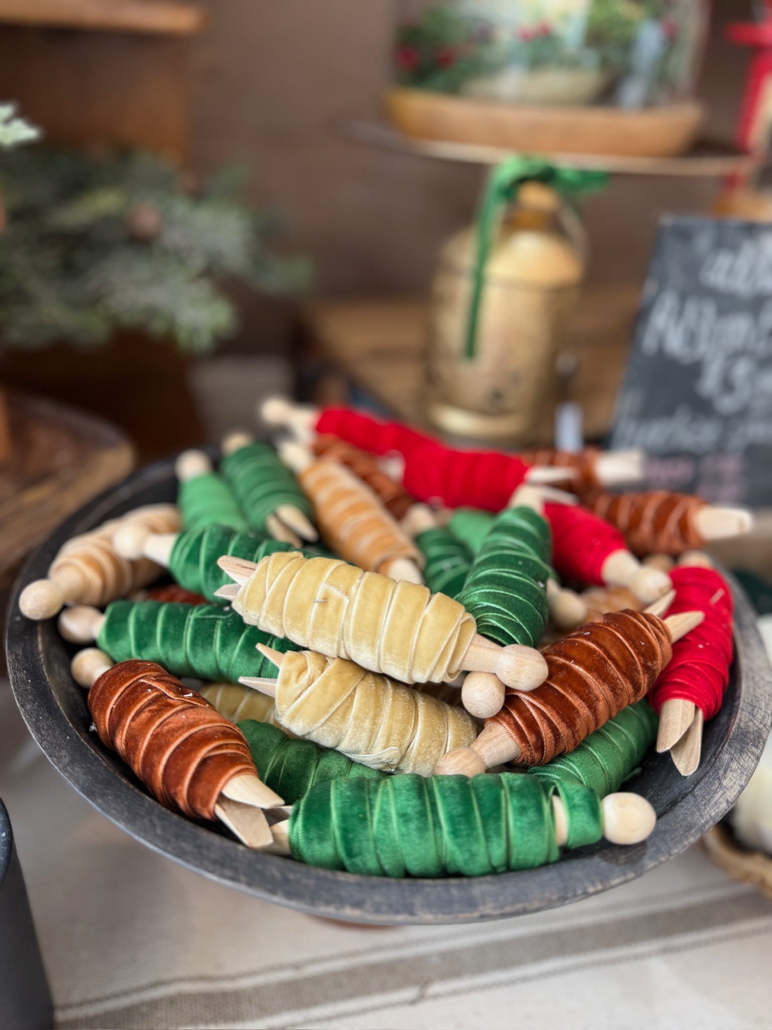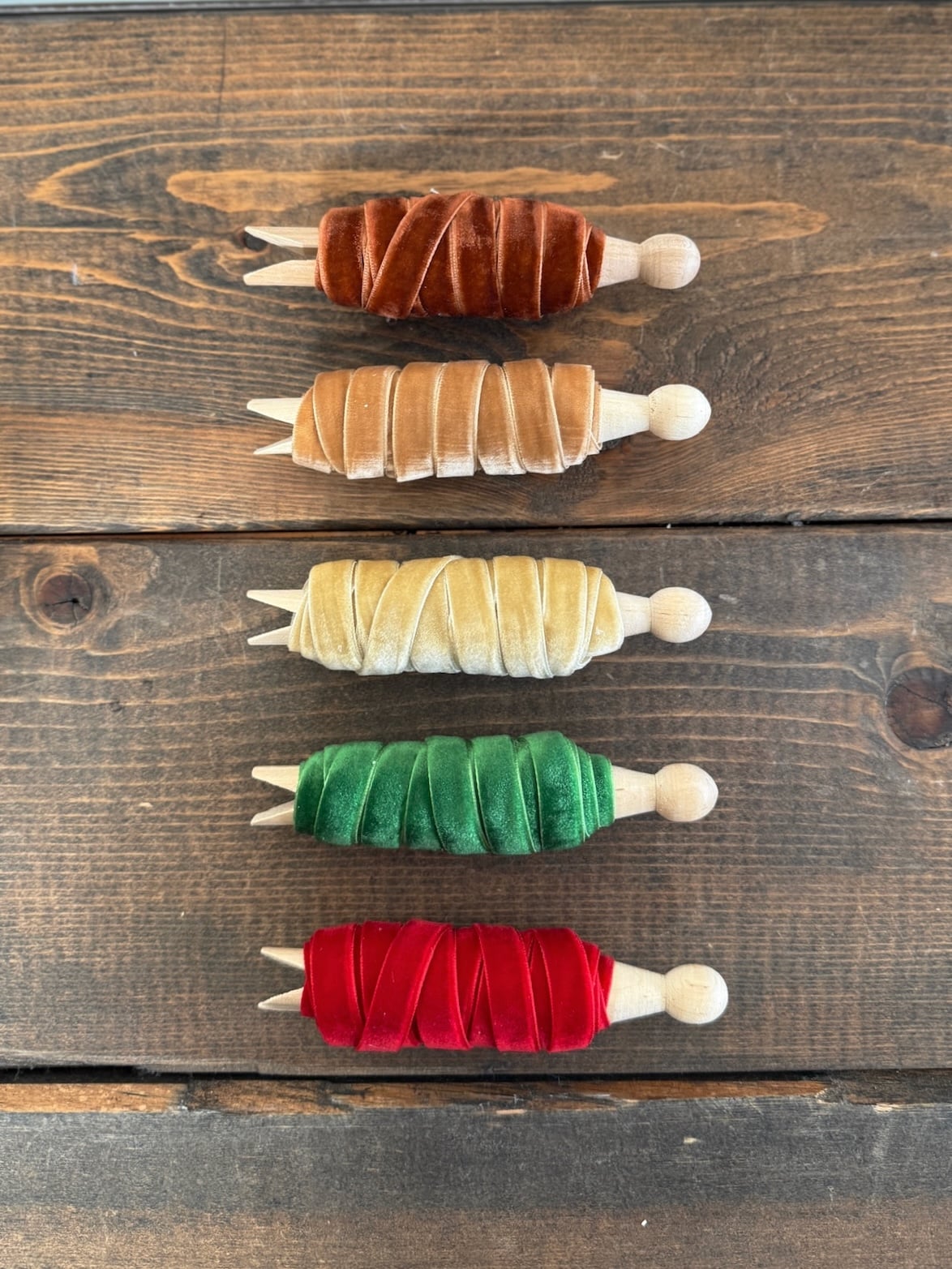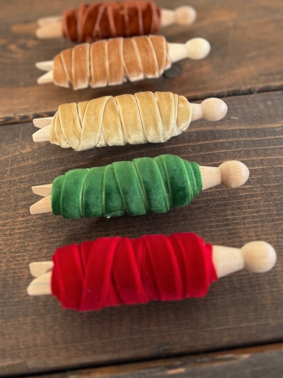 Add a touch of luxe to your holiday wrapping and décor with the Velvet Ribbon Spools – 5 Colors. Each decorative wooden spool holds 3 yards of soft ribbon, giving you rich texture and timeless color for any project.