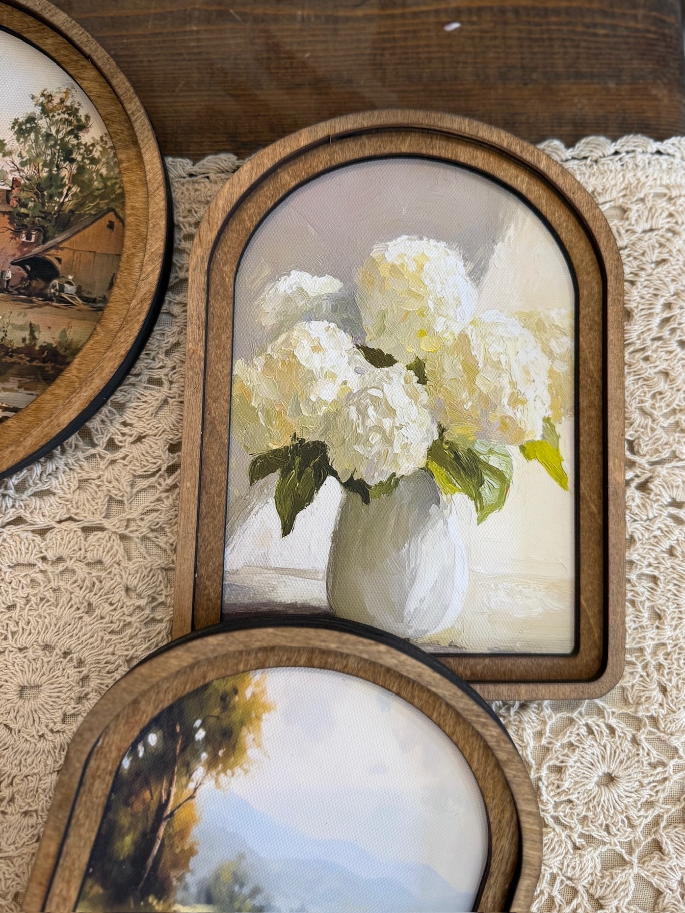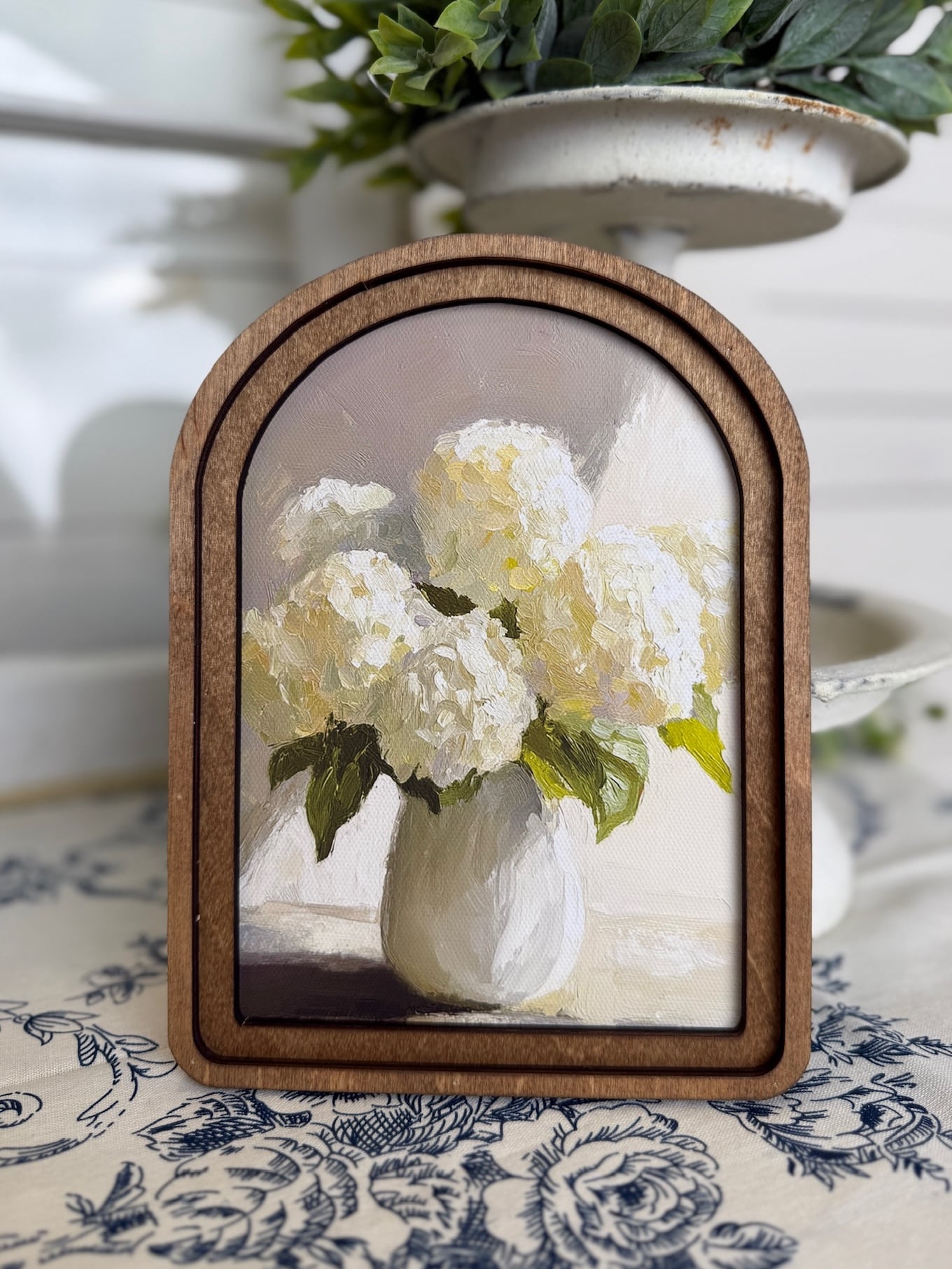 White Hydrangea Vase Arched Wall Art
